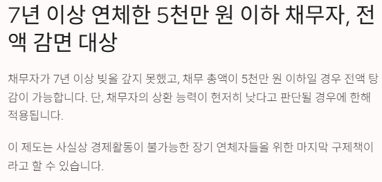 채무자가 7년 이상 빚을 갚지 못했고, 채무 총액이 5천만 원 이하일 경우