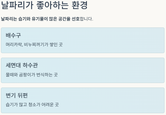 날파리는 습기와 유기물이 많은 공간을 선호합니다