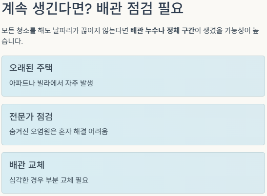 날파리가 계속 생긴다면, 배관 점검도 고려해보세요