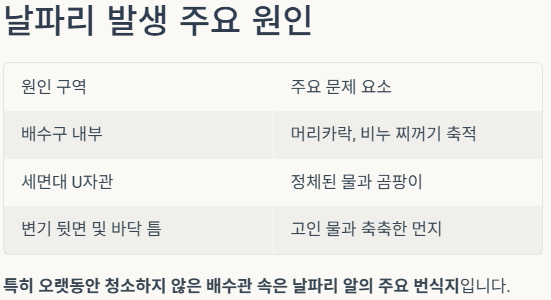 특히 오랫동안 청소하지 않은 배수관 속은 날파리 알의 주요 번식지입니다