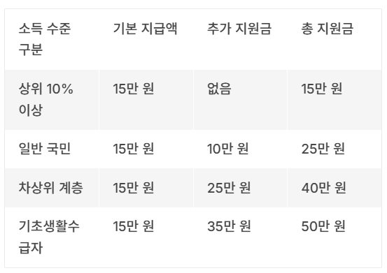 | 일반 국민 | 15만 원 | 10만 원 | 25만 원 |